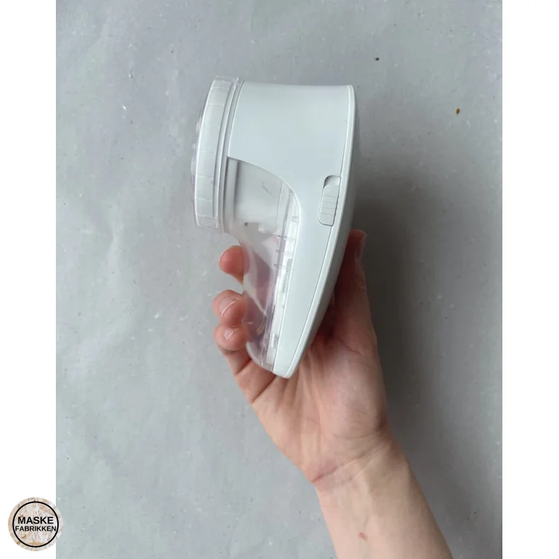 Uldshaver/lint remover/fnugfjerner. Uanset hvad man kalder den, kan den bruges til at barbere fnug af dit strik. Den fjerner overskydende fibre, og får stoffet til at se pænt ud igen.